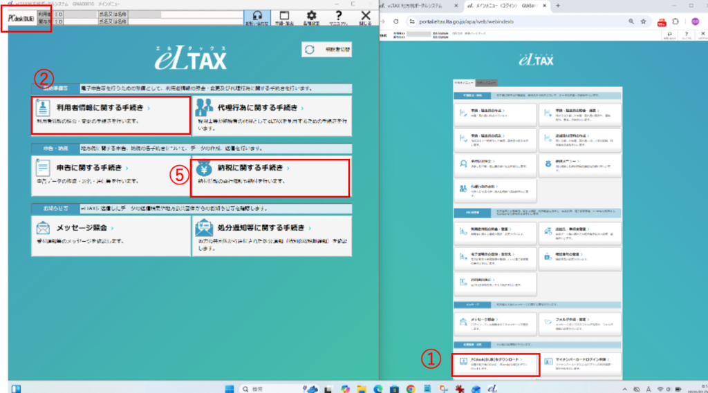 ① eLTAX(Web版)にログインし、PCdesk(DL版)をインストール