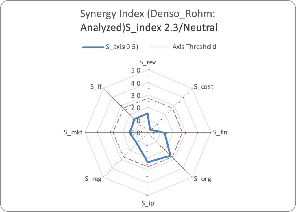 デンソー×ロームのSySIシナジーレーダー(定性分析の可視化、Synergy Index 2.3 / Neutral)